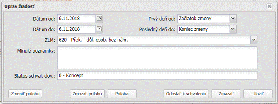 príchod/odchod alebo pre generovanie odchýlok alebo pre zasielanie príloh.