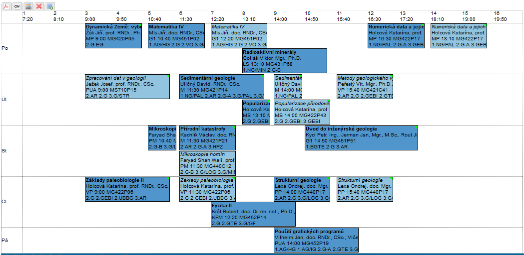 - nůžky vpravo dole = v pravidelné výuce jsou explicitně vystřižené díry (zrušena výuka alespoň v jednom týdnu), netýká se děr vytvořených harmonogramem (svátky, děkanské dny, ...)